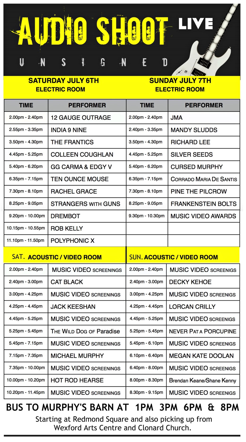 ★ Performance times for each act will be displayed once all acts are confirmed.